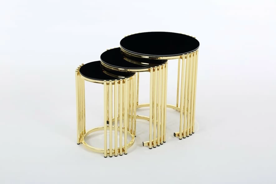 Here is Our Beautiful Zeen Nest Of 3 Tables In A Beautiful Black Glass With Gold Metal or White Glass With Chrome Surround & Legs