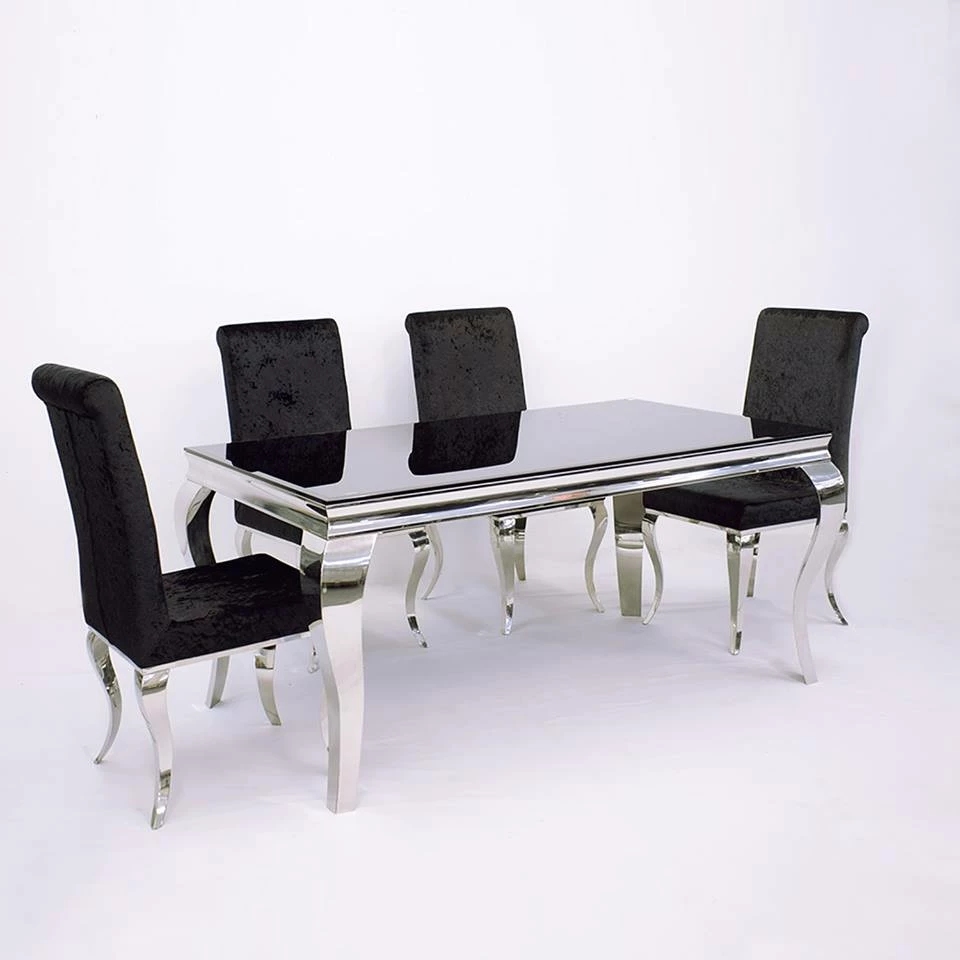 The Imperial Dining Table is an exquisite and stylish addition to any dining area. With its distinctive tempered glass top and contrasting stainless steel base