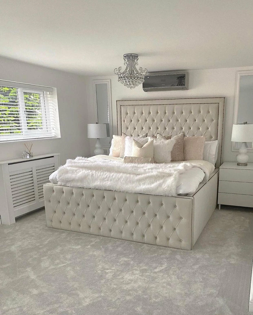 - Rolled back crushed velvet headboard and foot board with diamantes or button