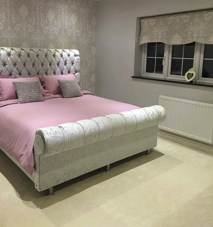 - Wingback Plush velvet headboard and foot board with diamantes or button