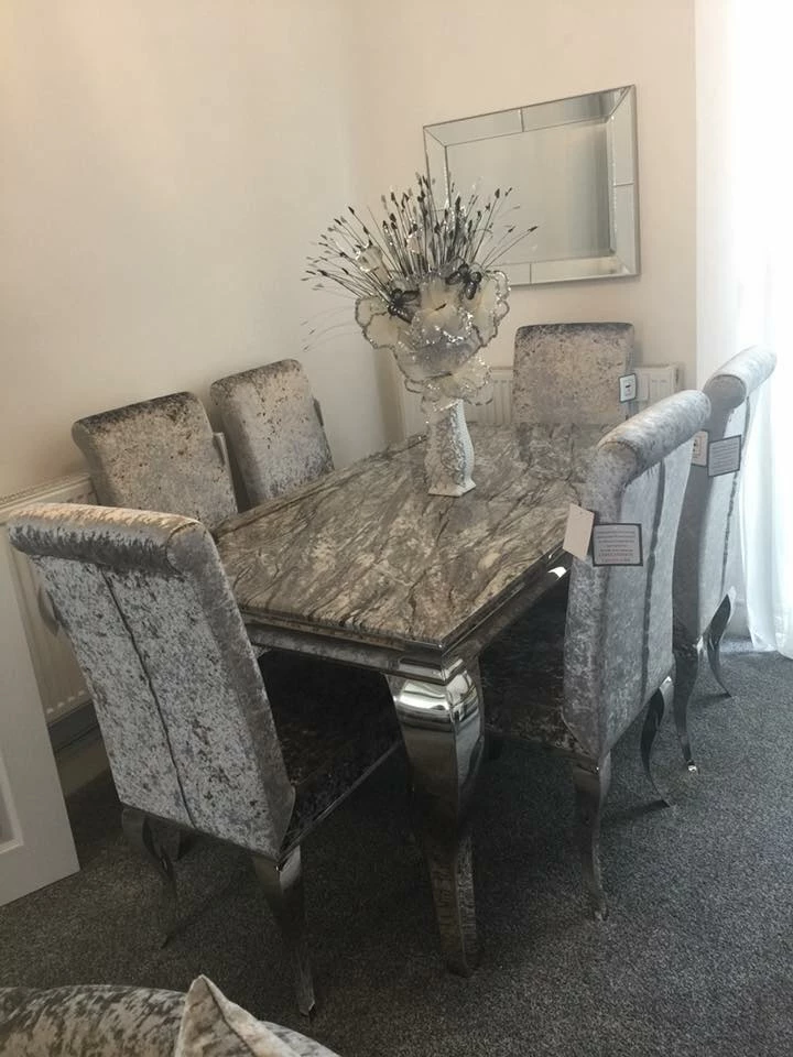 The NEW Luxury Velvet Chrome Leg Imperial Dining Chairs EXCLUSIVE to Furniture Imports Ltd !!! The Stunning Velvet Imperial Dining Chairs are sure to impress with stunning chrome legs and scroll back. Upholstered in the finest Velvet materials the Imperial chair ties together any dining suite with class and style