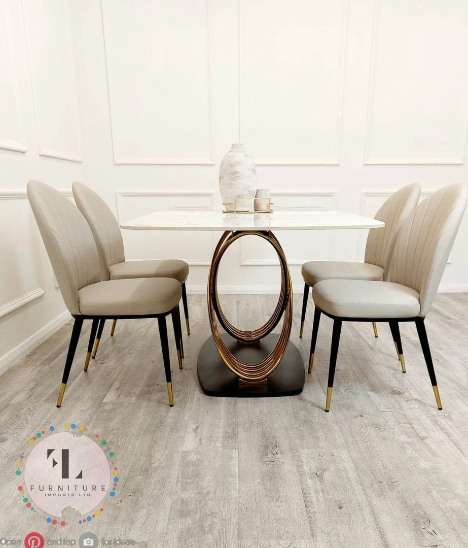 ORION DINING TABLE & SIENNA FAUX LEATHER CHAIRS