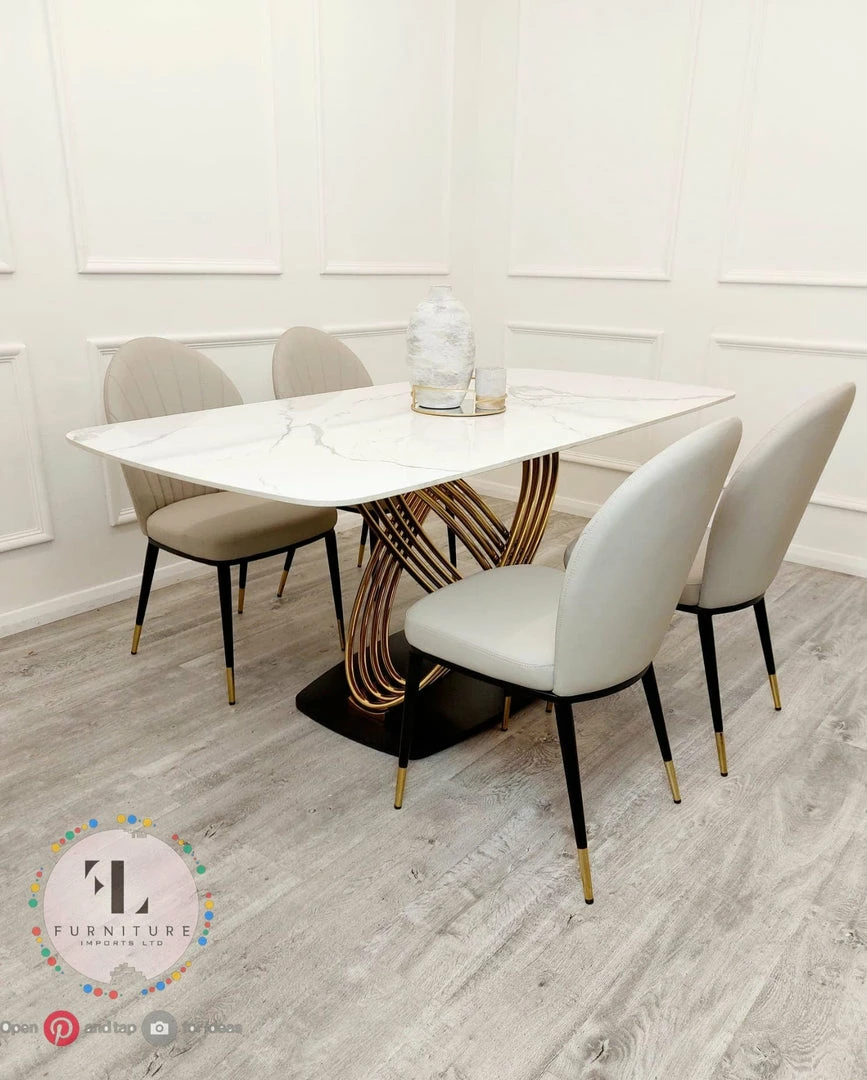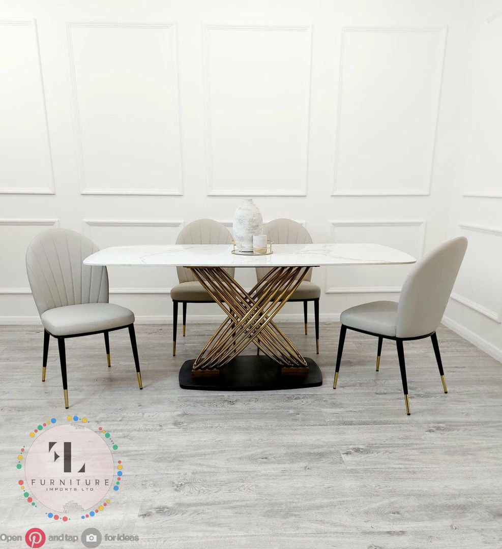 The new 2022 design Orion Dining Table with a contemporary design and temperament, the Sintered Stone Top gold dining table is an exquisite piece of furniture. This dining table has a distinct manufactured look and feels that is undeniable. Its stunning design has it all, and it’s very contemporary. Focused attention and a powerful statement of excellence is a presentation of this table