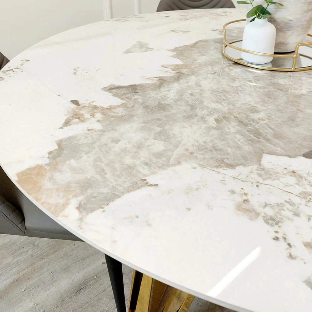 The new 2020 designย Nero Dining Table with a contemporary design and temperament, the Sintered Stoneย Top gold dining table is an exquisite piece of furniture. This dining table has a distinct manufactured look and feels that is undeniable. Its stunning design has it all, and it’s very contemporary. Focused attention and a powerful statement of excellence is a presentation of this table