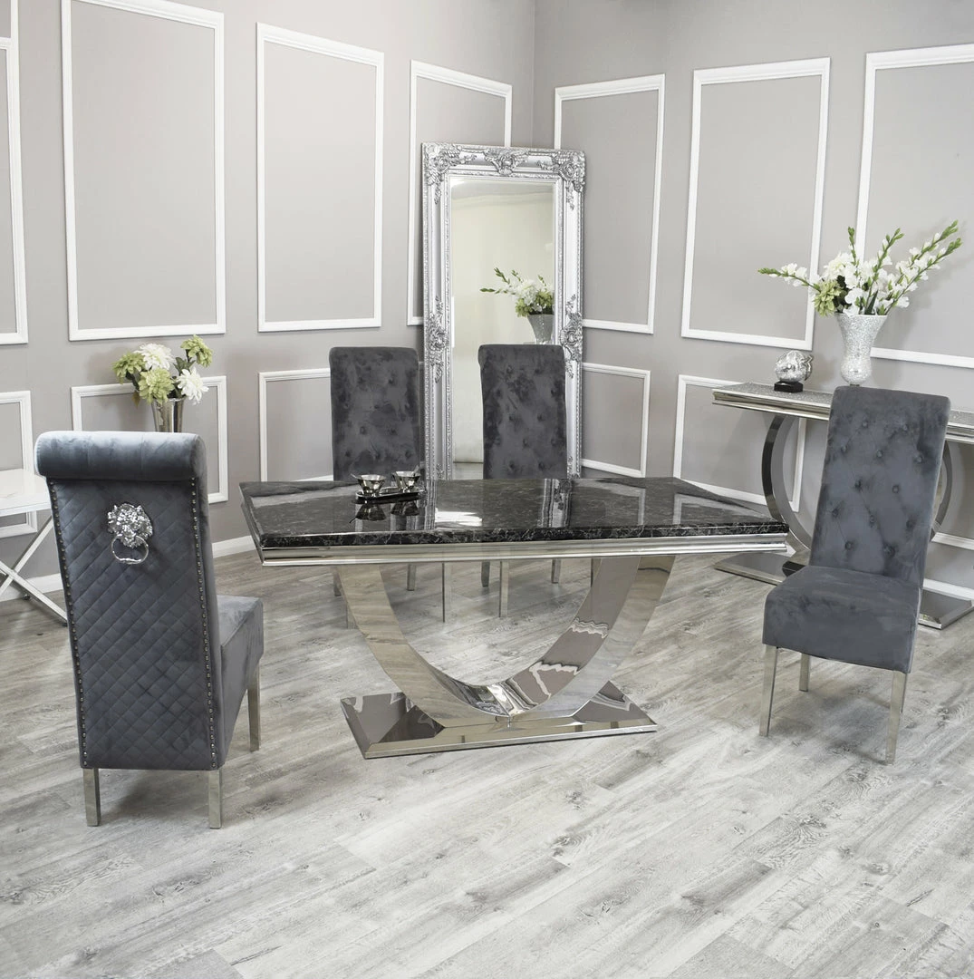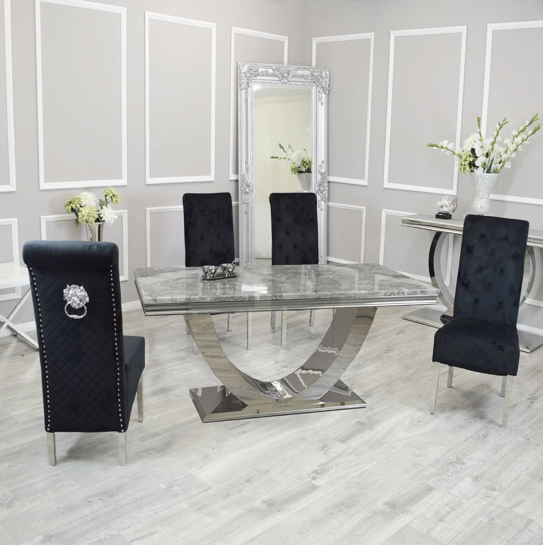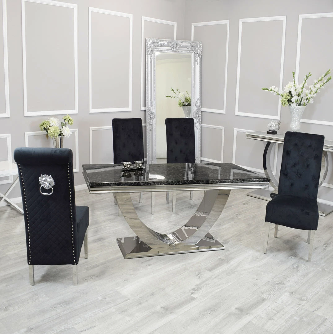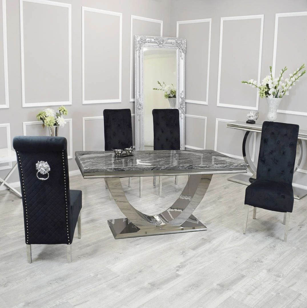 Bringing a special, contemporary approach, the Arial dining table is certain to wow visitors enabling you to eat in style, A wonderful, amazing marble top is done with smooth stainless steel legs ,For a really lavish eating knowledge include the Hobbs seat in an exquisite velvet smash complete, either in a different shading
