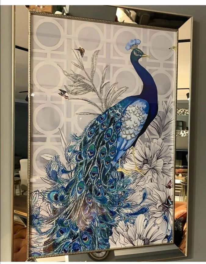 Stunning silver & Blue PeacockΒ 3D glitter art picture mirror frameΒ