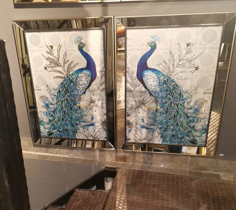 Stunning silver & Blue Peacock 3D glitter art picture mirror frame