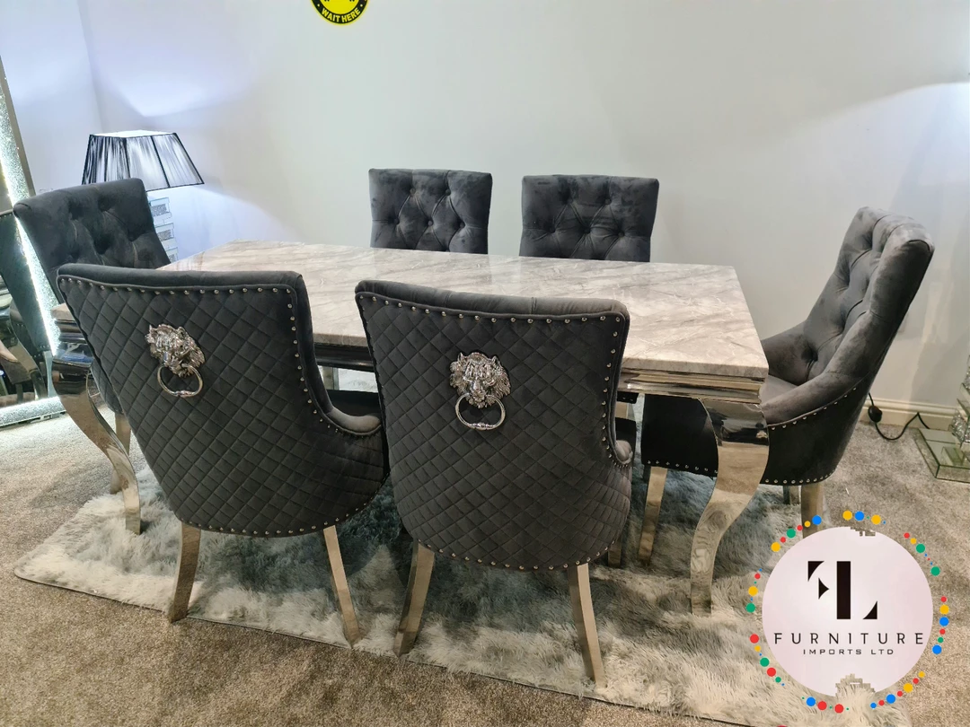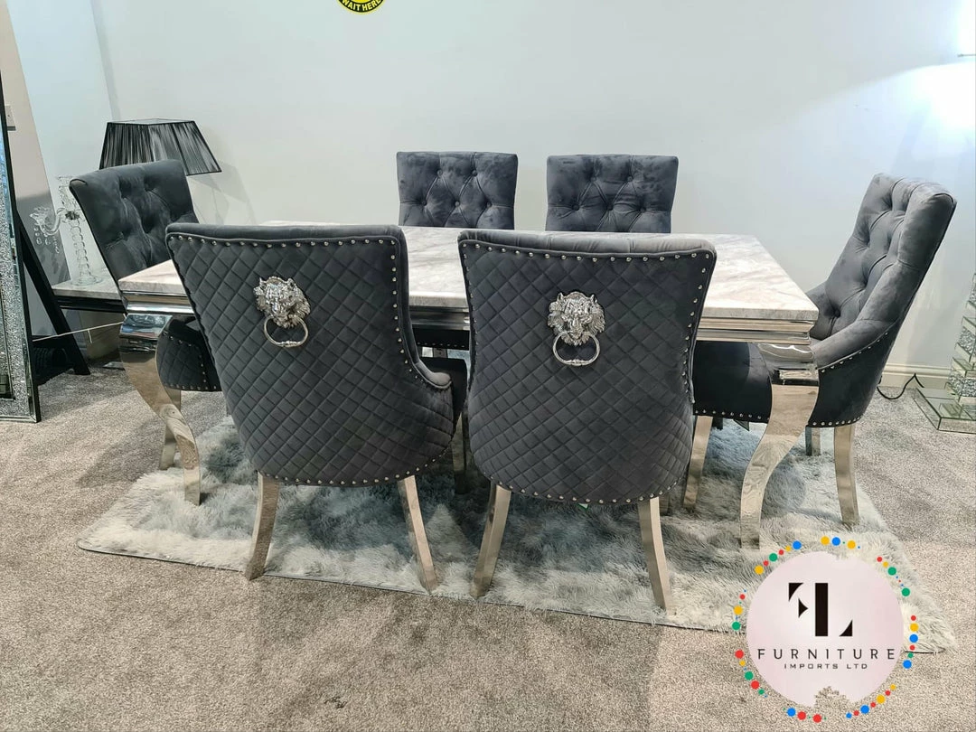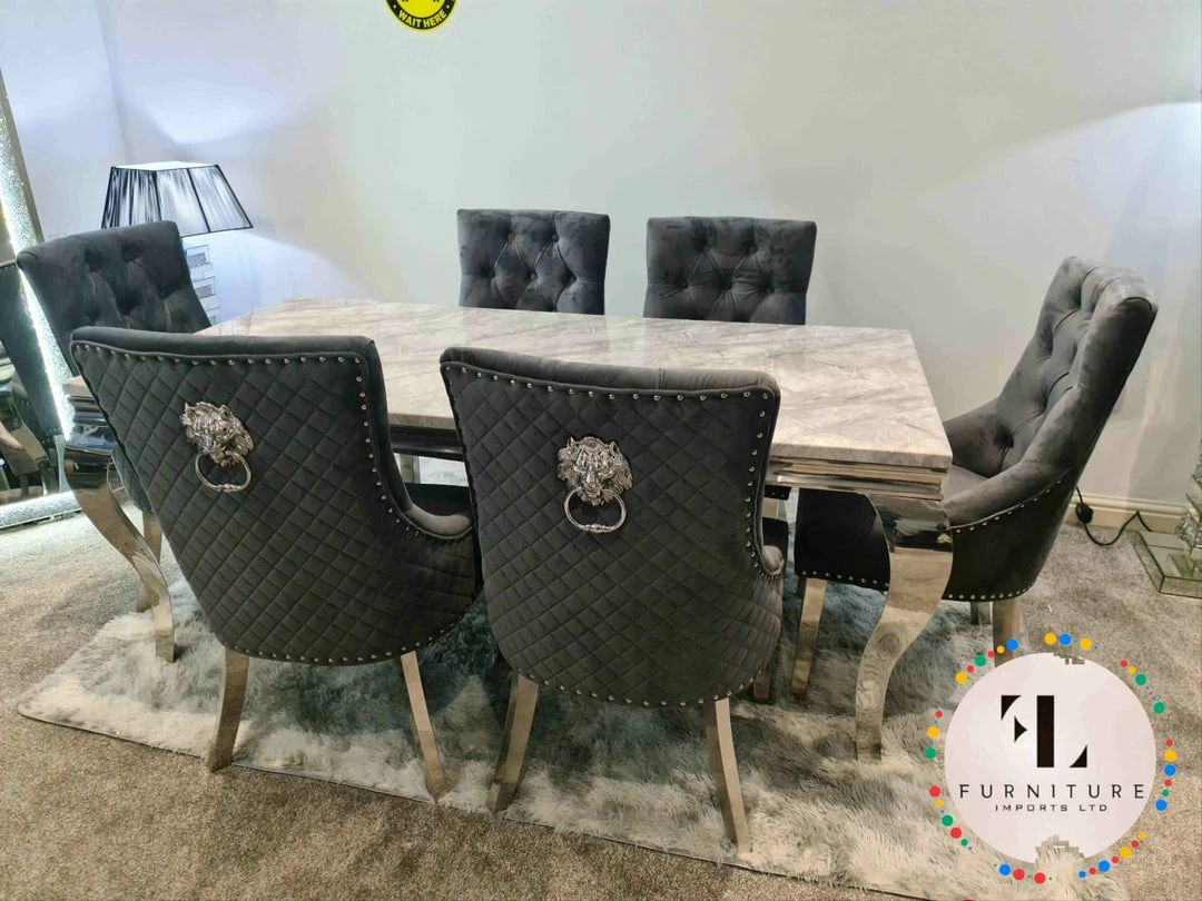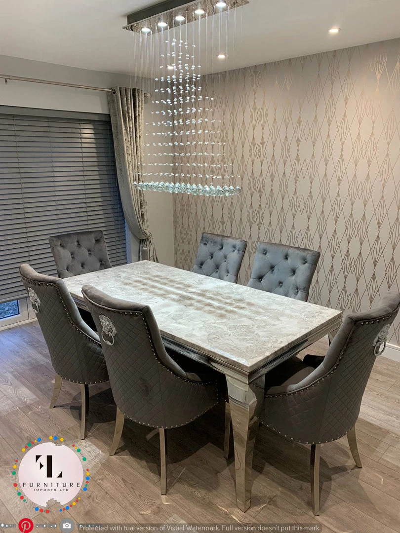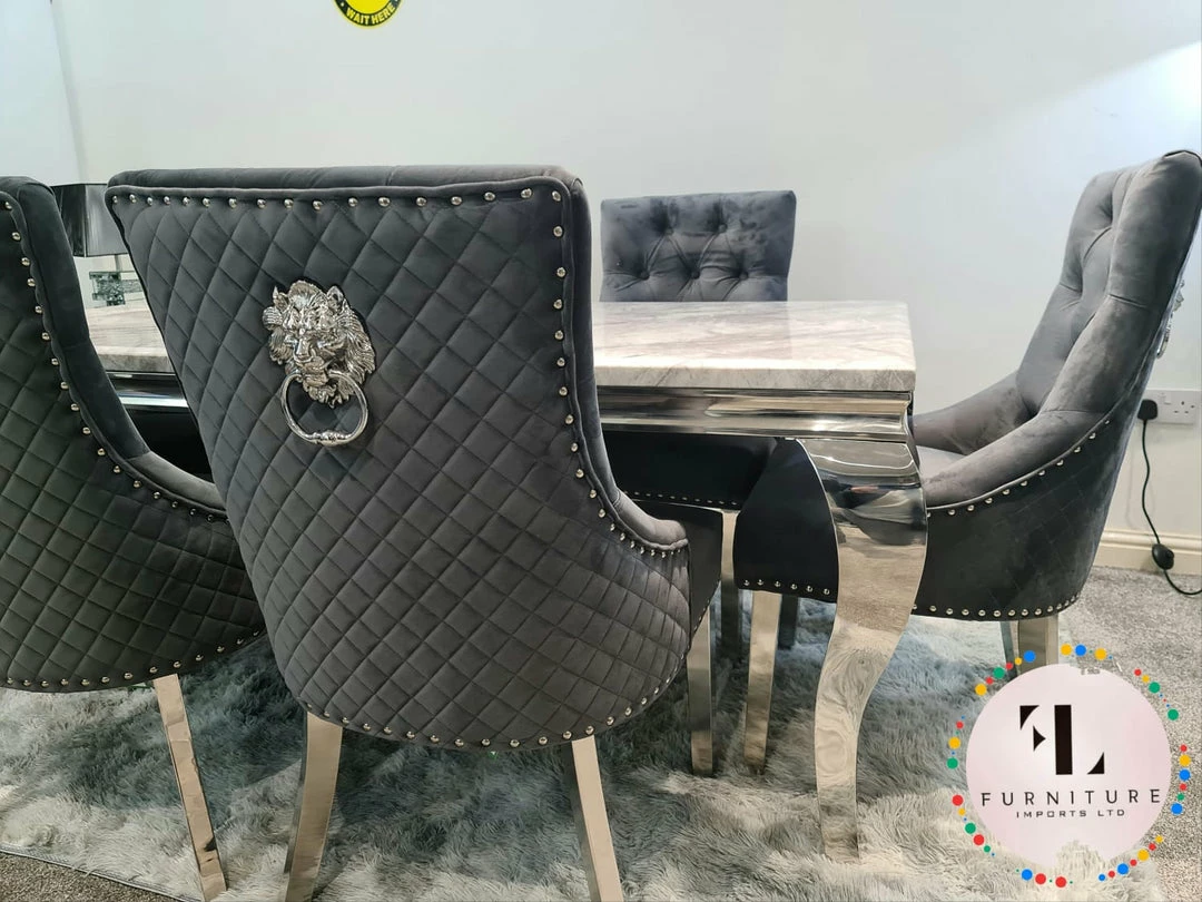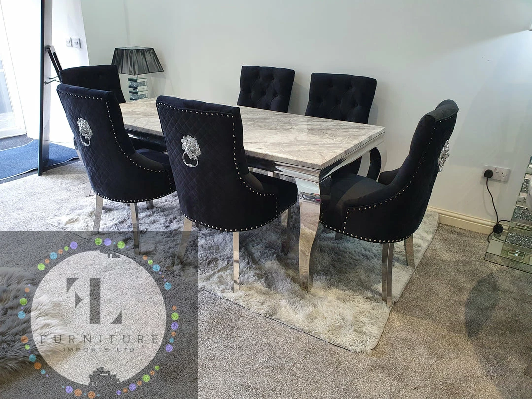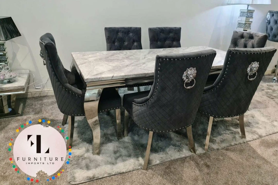 Ultra chic and high end, the Chelsea Dining Setย is the ultimate collection for those who crave style and glamour. Itโs unique marble top is supported by a polished stainless steel base