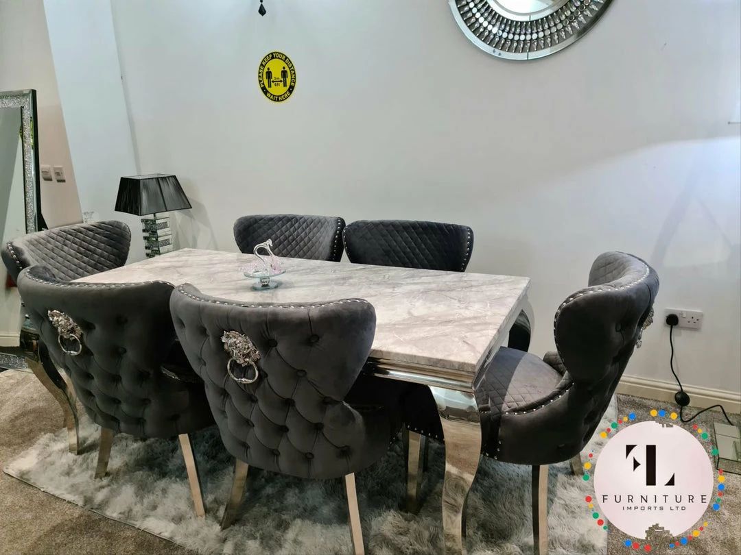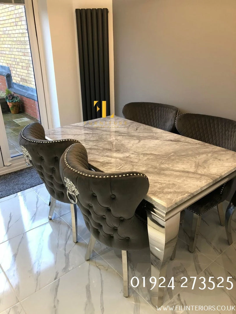 Valentino Imperial Grey Solid Marble Dining Table Set