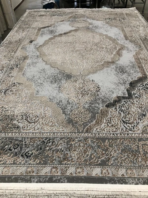 Crafted with a beautiful design, this grey, taupe medallion rug is perfect for completing your neutral home decor concept. Its Shimmer effect alongside its pile plush makes it a very soft warm rug