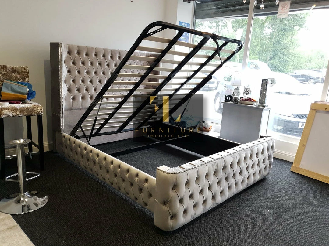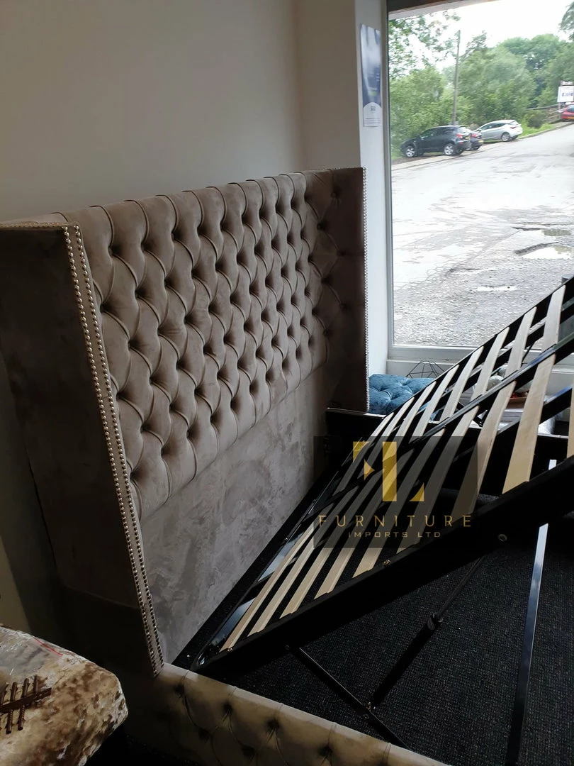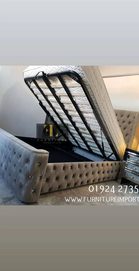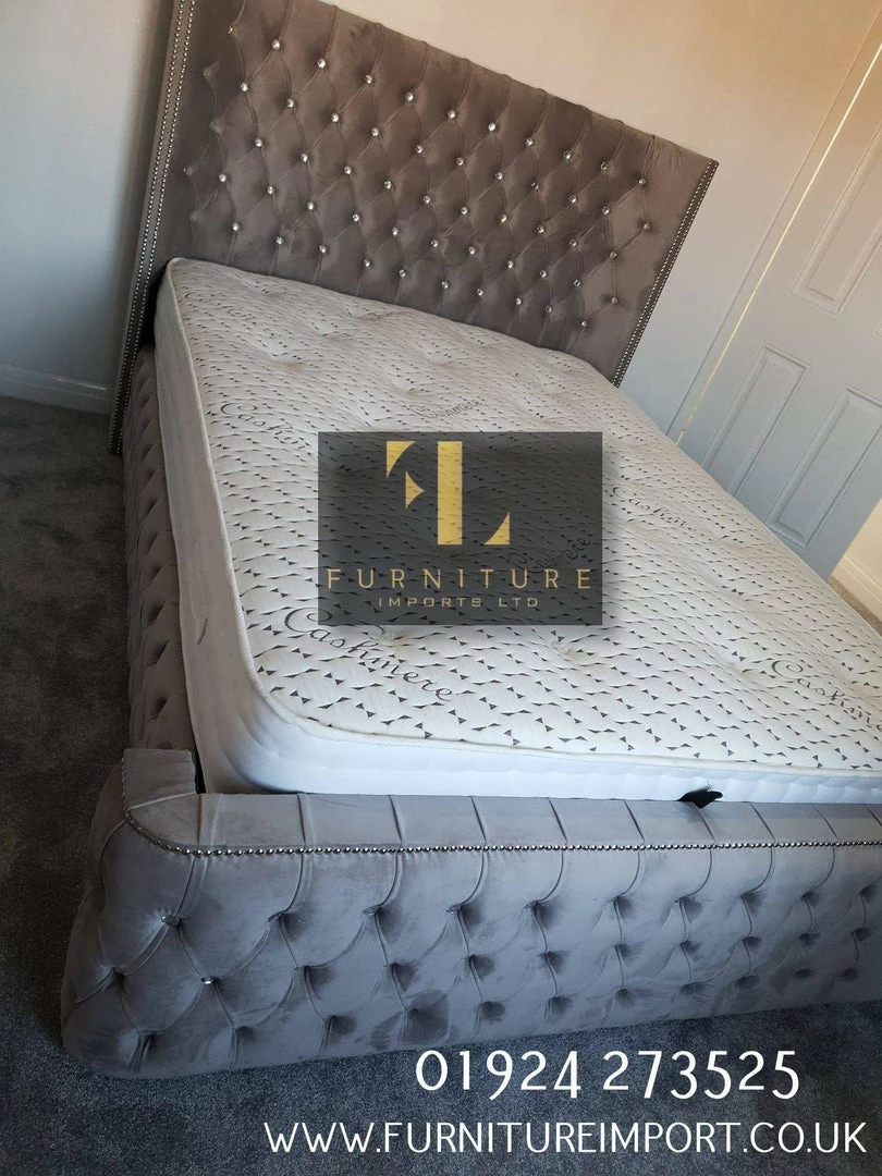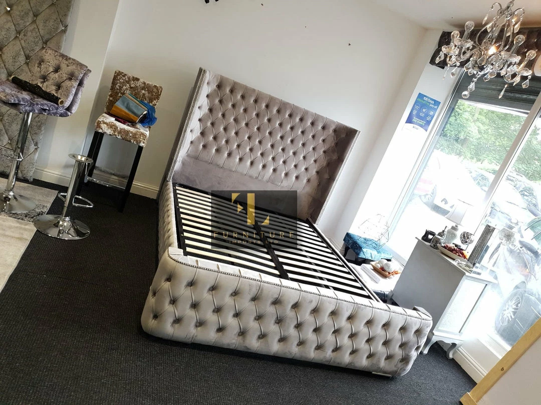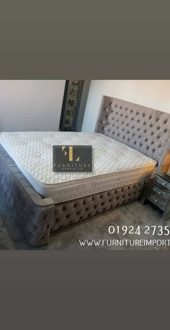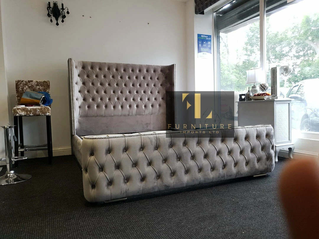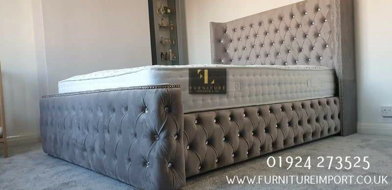 - Wingbackย Plush velvet headboard and foot board with diamantes or button