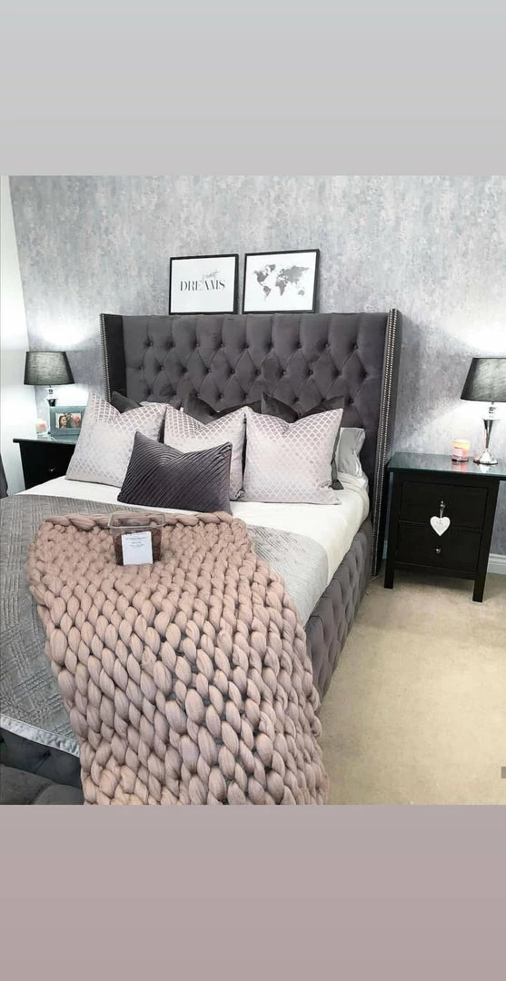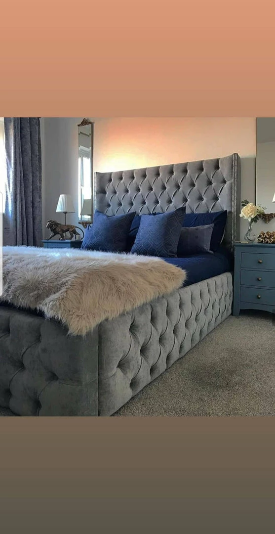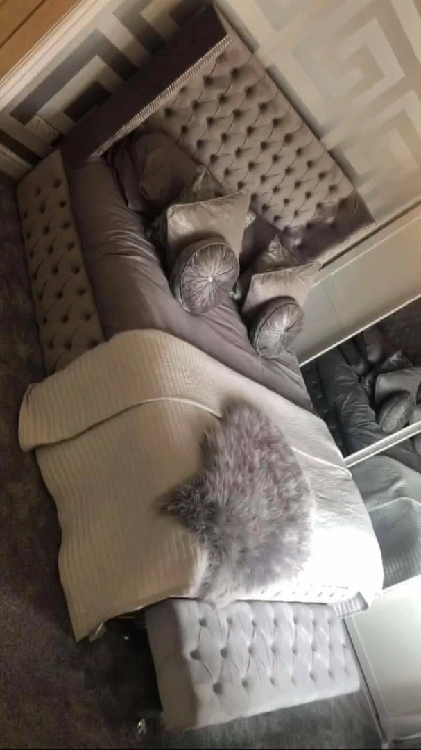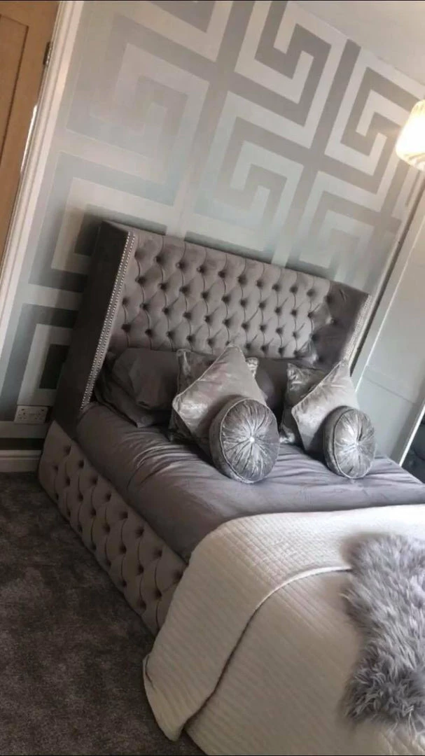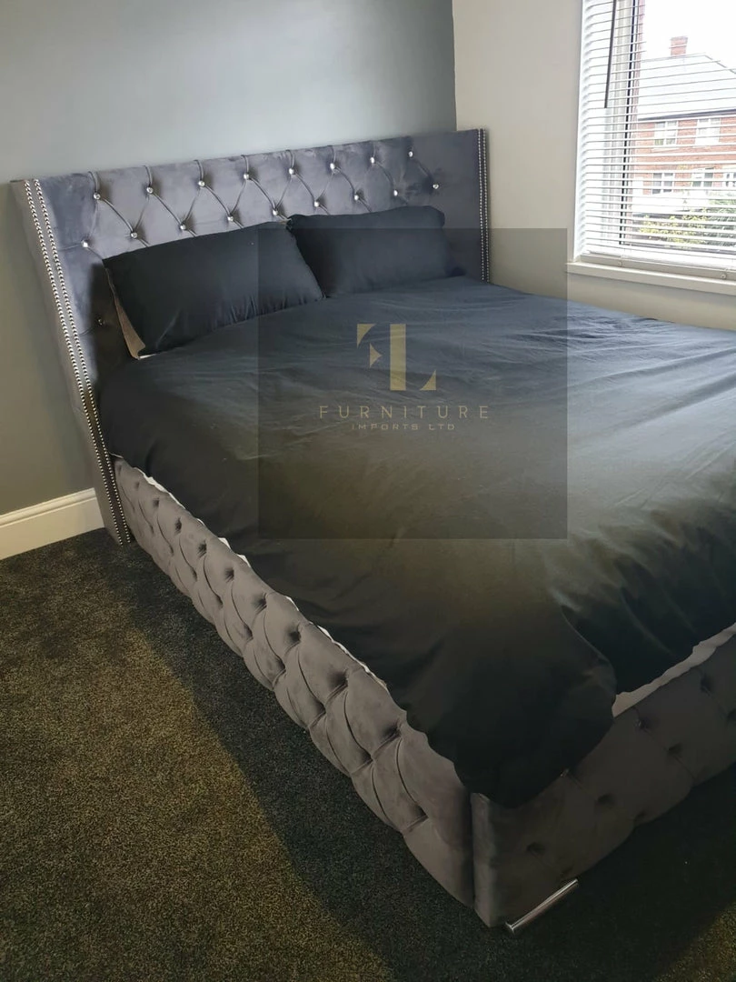 - Wingback Plush velvet headboard and foot board with diamantes or button