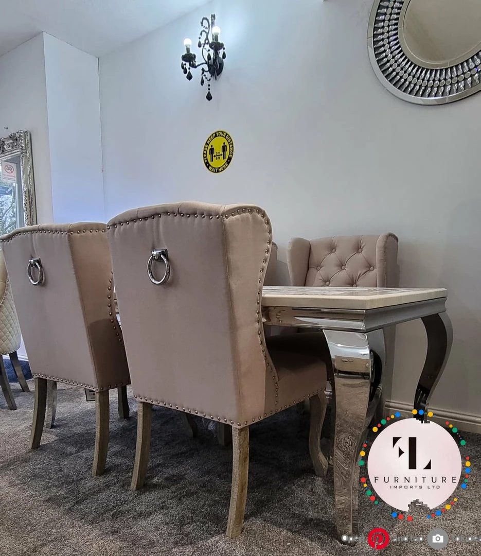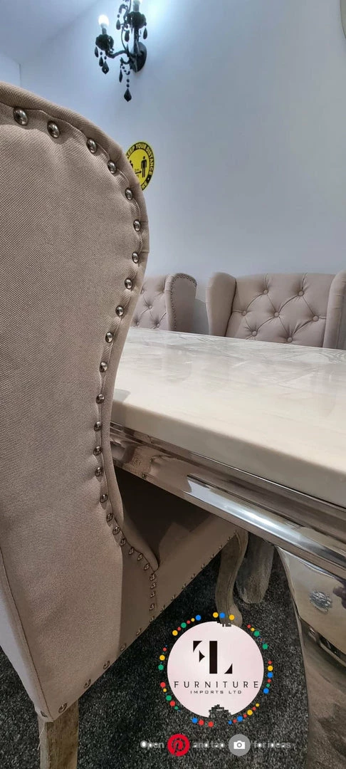 Ultra chic and high end, the Chelsea Dining Setย is the ultimate collection for those who crave style and glamour. Itโs unique marble top is supported by a polished stainless steel base