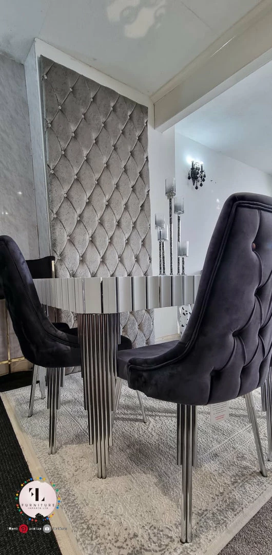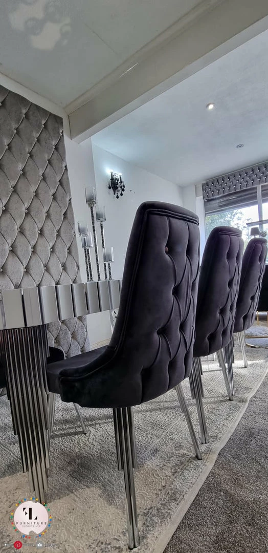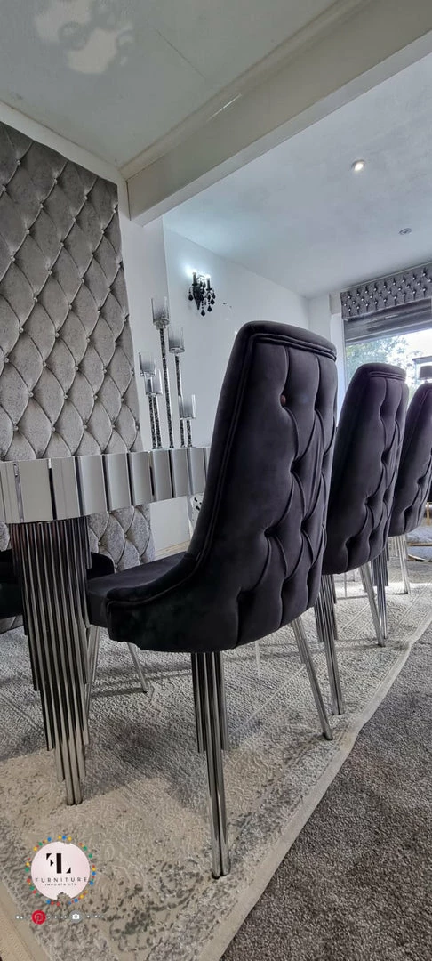 6 x Lotus Grey Velvet + Chrome Metal Legs