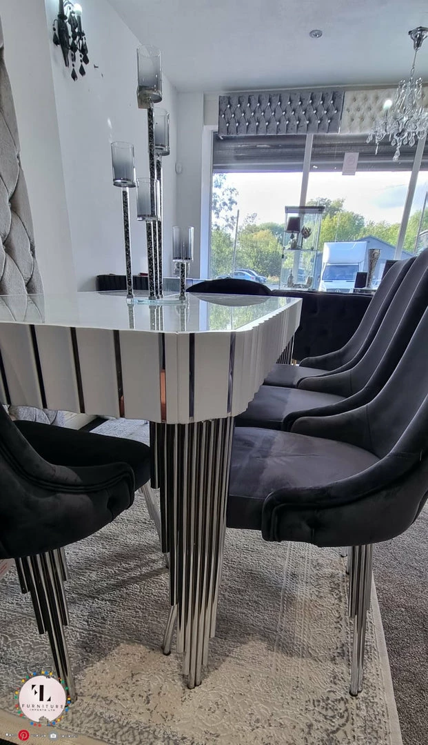 White & Chrome Dining Set – 180cm White And ChromeTable +