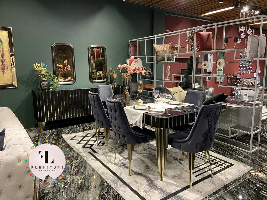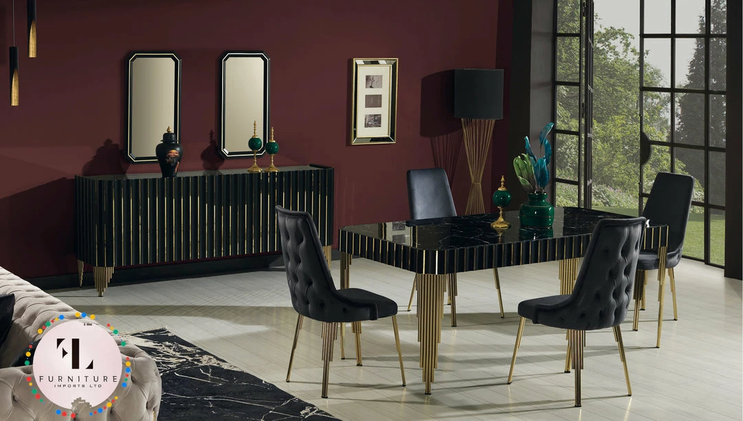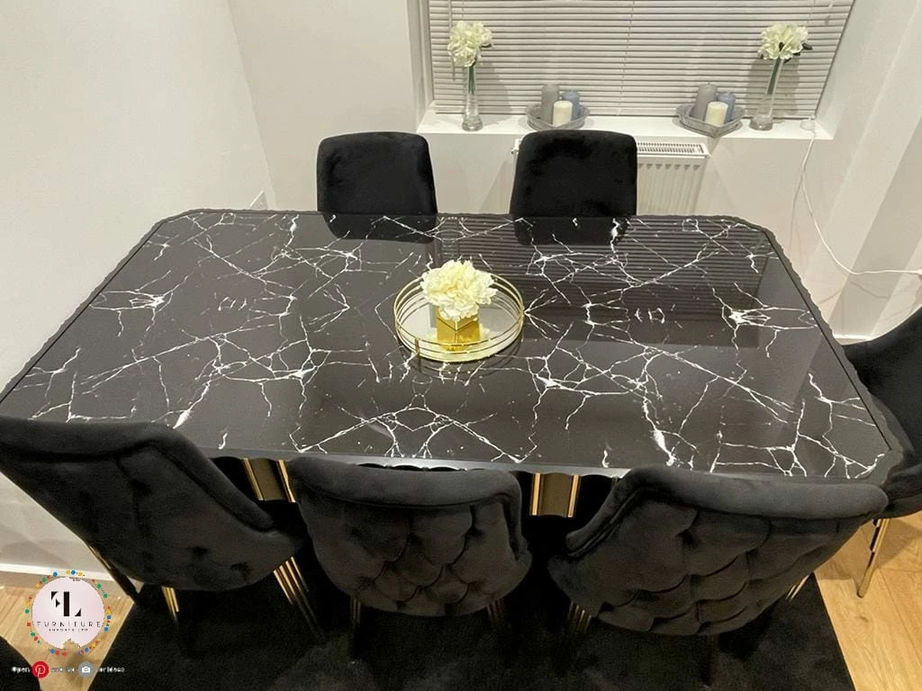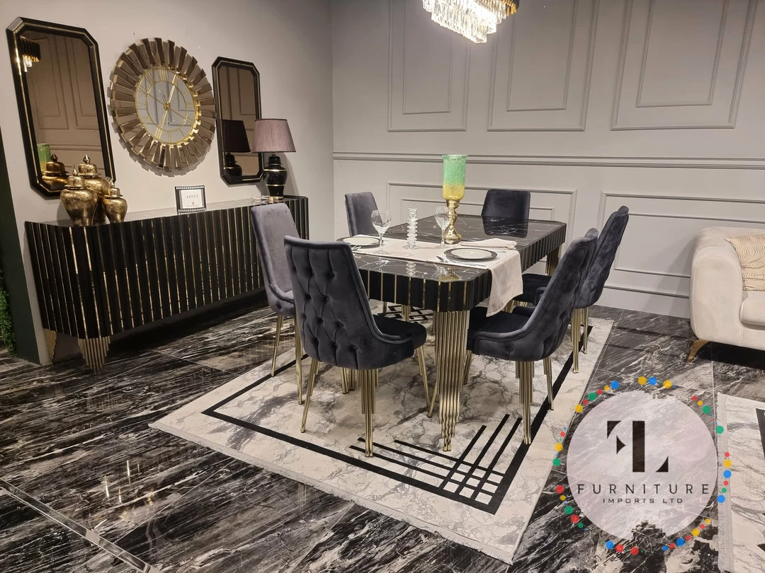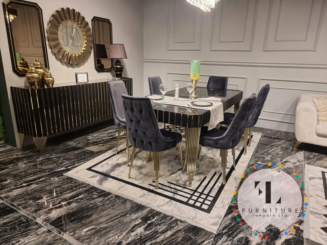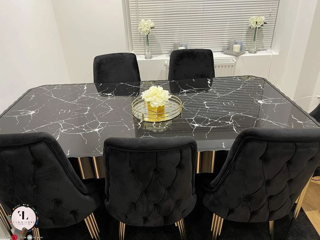 Black & Gold Dining Set – 180cm Black And Gold Table +