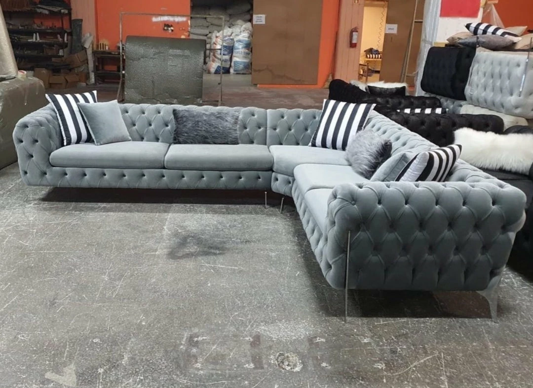 Hermes Corner 270cm x 270cm Silver Velvet & Chrome