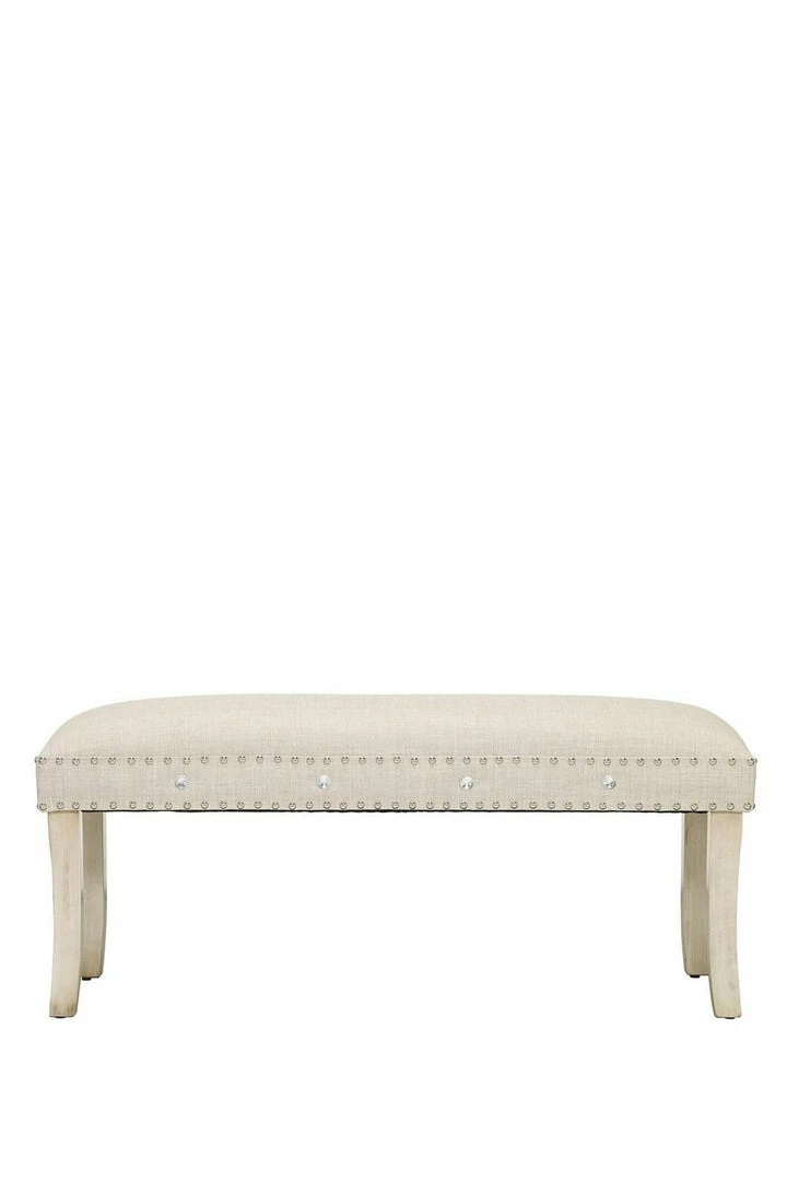 A linen style fabric bench offering an opulent feel to any room with its diamante and studded detailing.