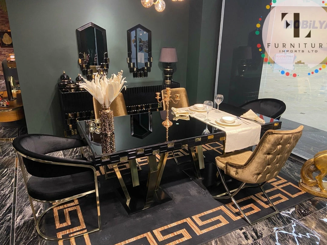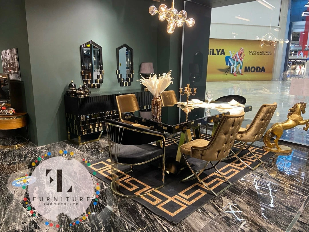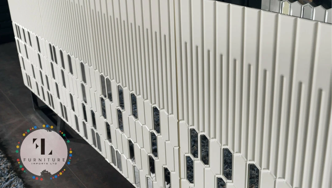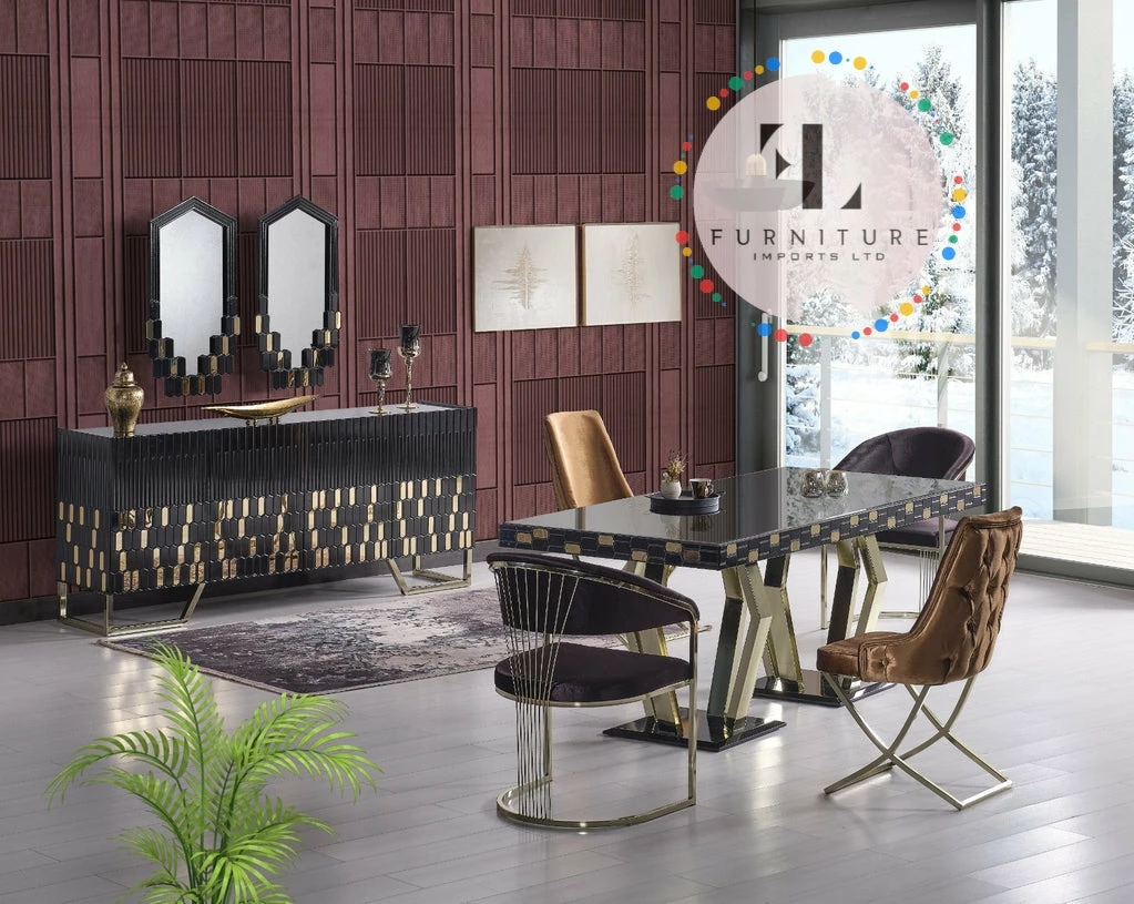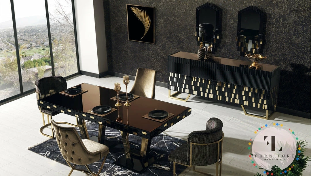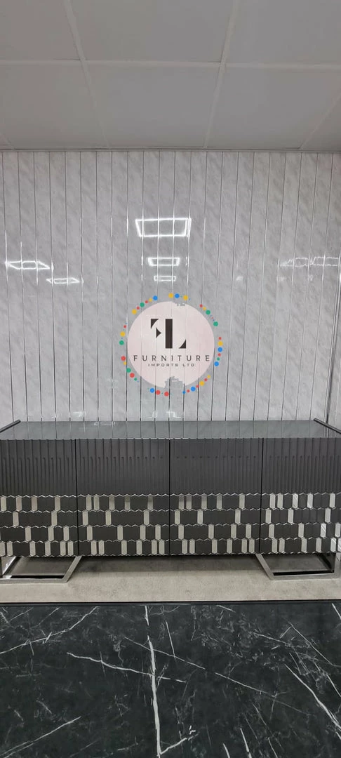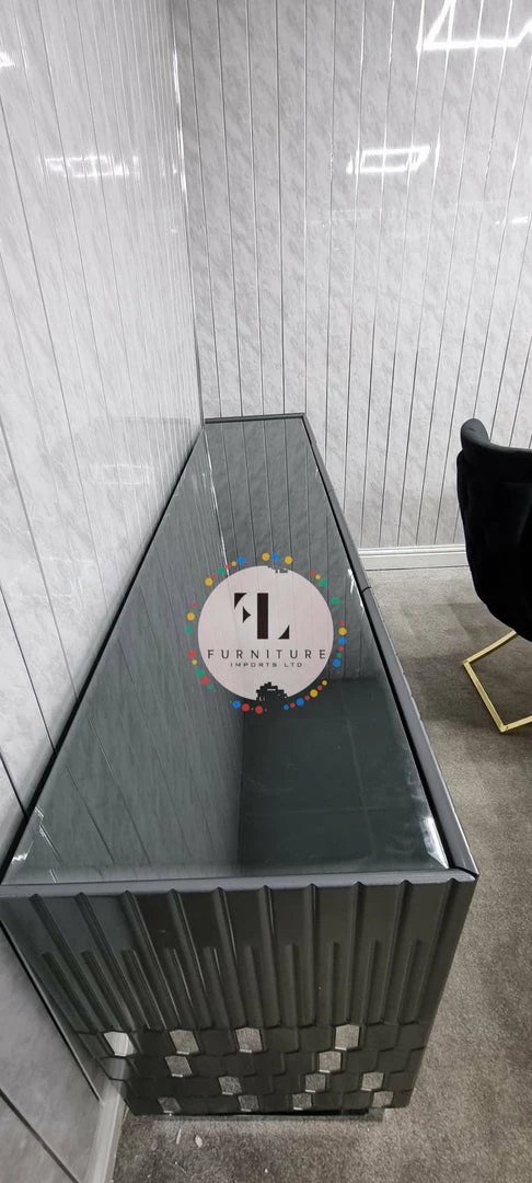 Designed to add a touch of luxe to your space, this dark gloss sideboard is sure to catch compliments. With rich gloss finished with a parquet design, this unit is timeless and classically beautiful. The gold-plated steel frame and matching handles add a fresh, modern edge with a subtle sparkle, while the large surface top gives you the space to make it your own, ideal for displaying flowers, photos and more. With 4 internal compartments, thereโs plenty of room to store anything from barware to book to bits and bobs that need a home.