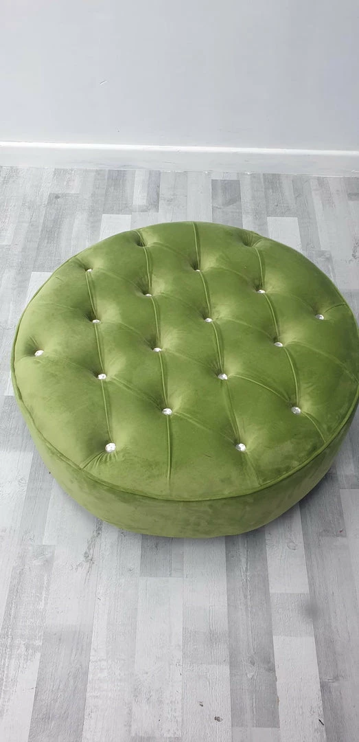 Chesterfield Half Uphosltery Round Sofa Footstool