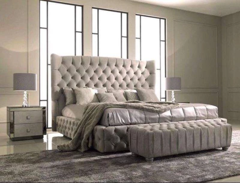 - Wingback Plush velvet headboard and foot board with diamantes or button