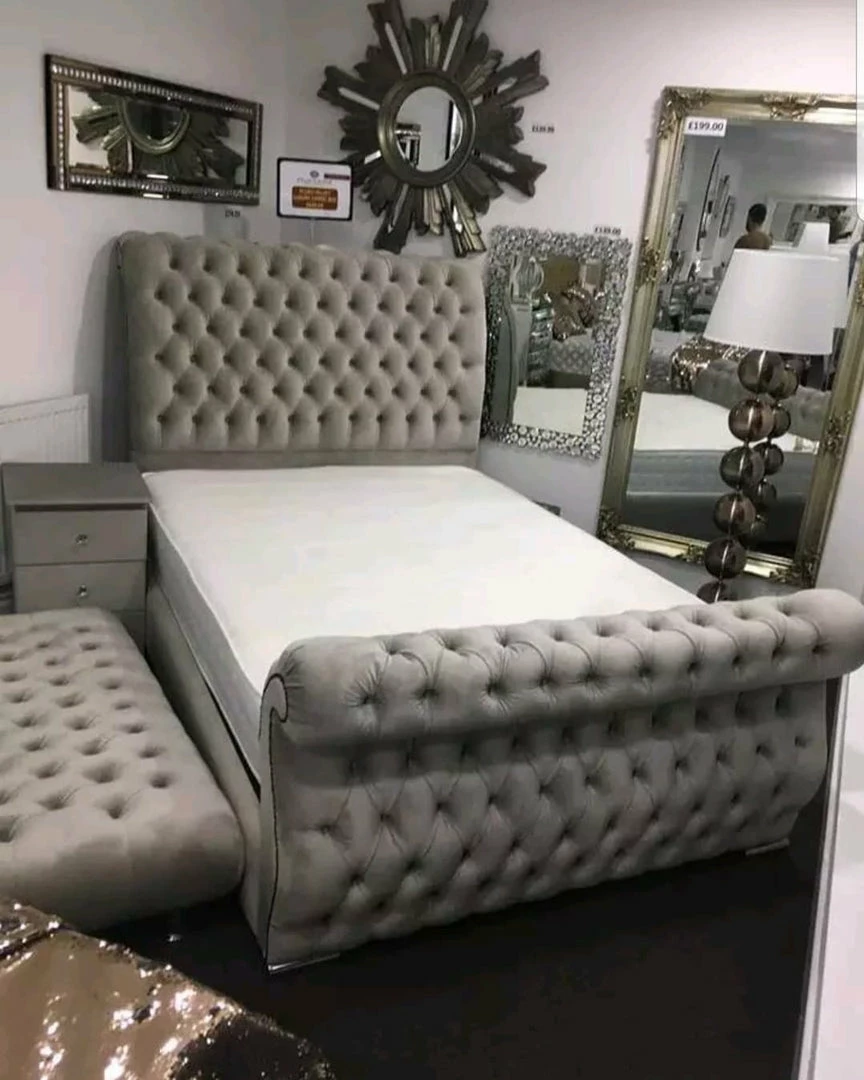 - Wingback Plush velvet headboard and foot board with diamantes or button