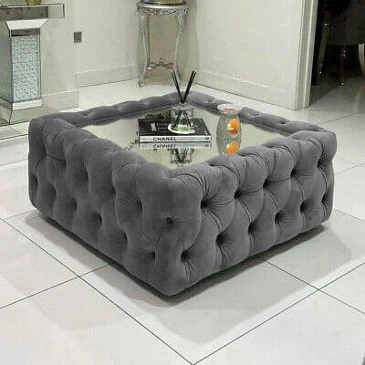 Feast your eyes on the Square Chesterfield FootStool in Plush Velvet, a luxury design that is guaranteed to impress