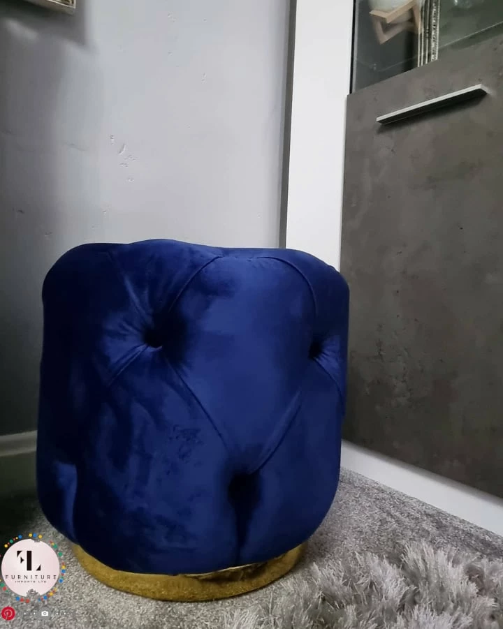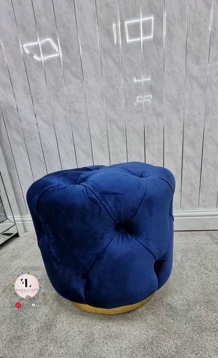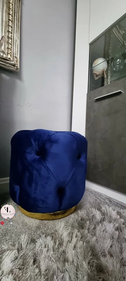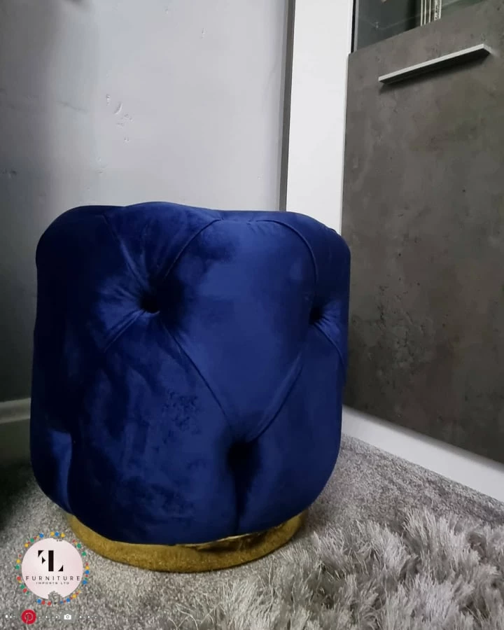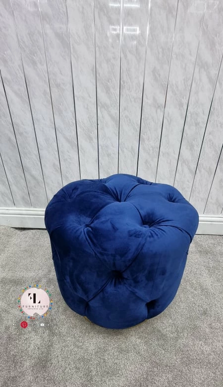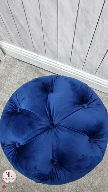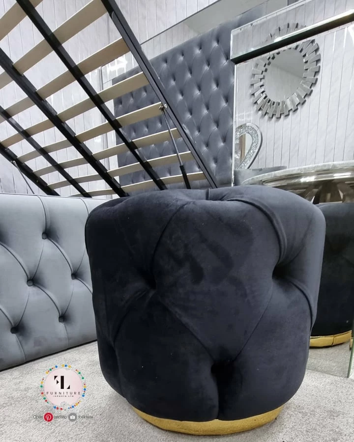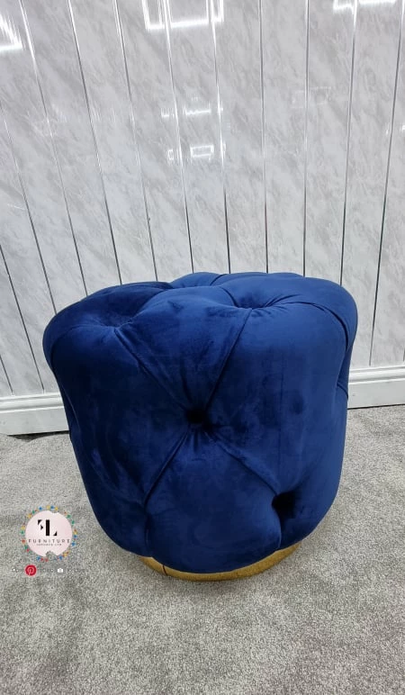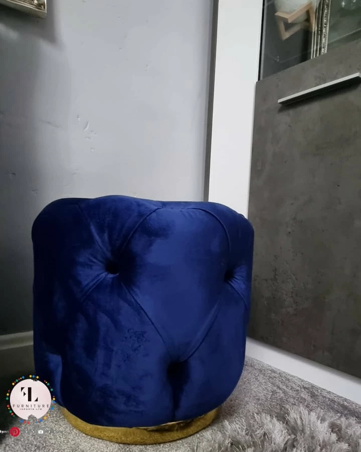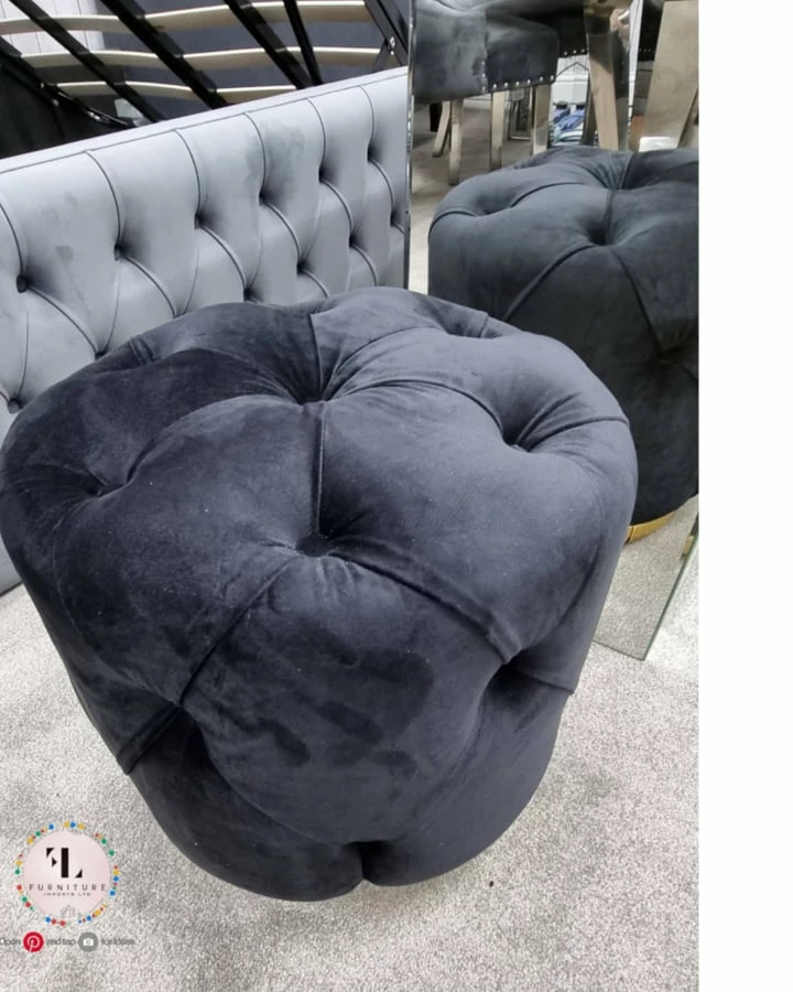 The Khalifah collection is sure to make a bold statement with its stunning upholstery design and Leather polished detailing. The padded seating and comfortable round stool wrapped in a luxurious soft chesterfield plush luxury velvet fabric with button detailing. The beautiful designed stool can be used in any interior setting, bedroom or living.
