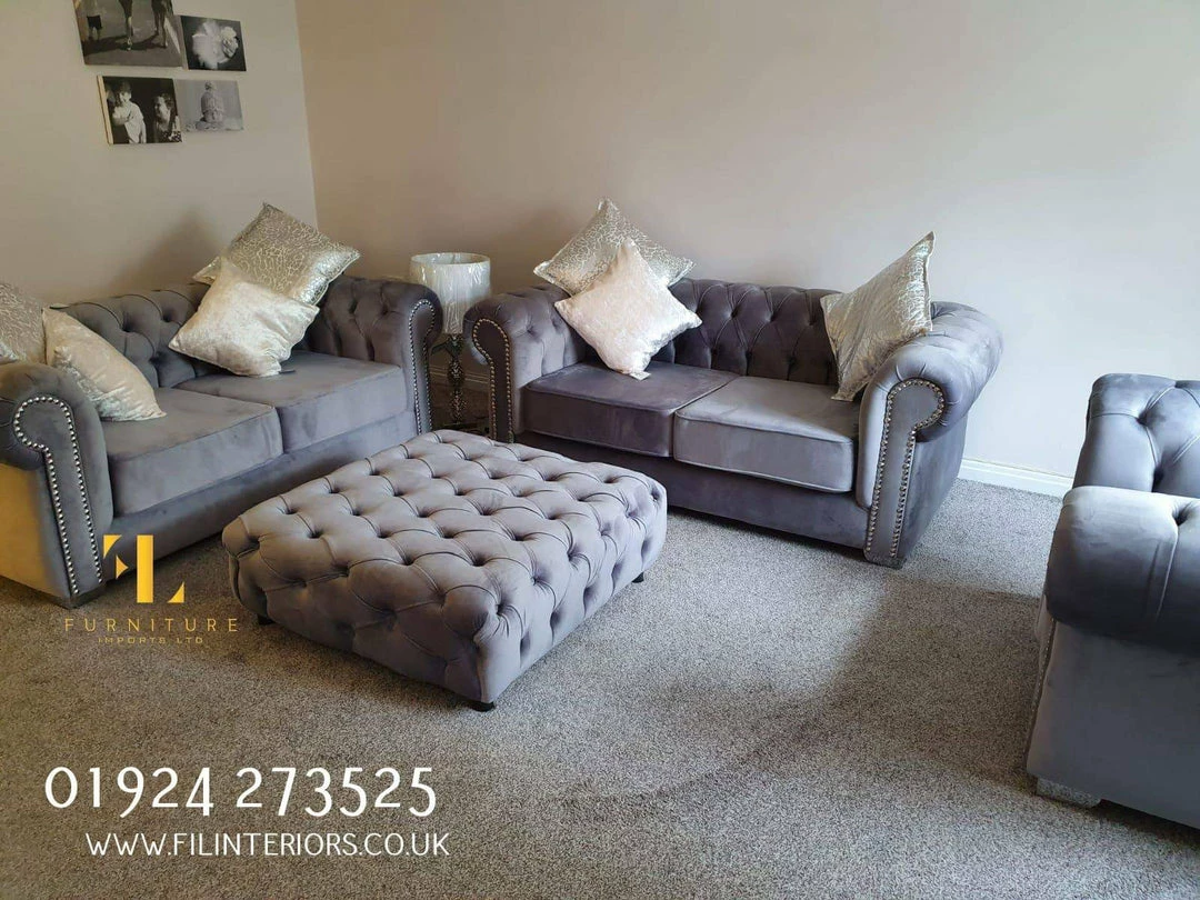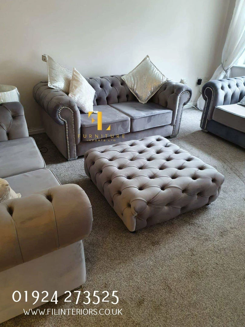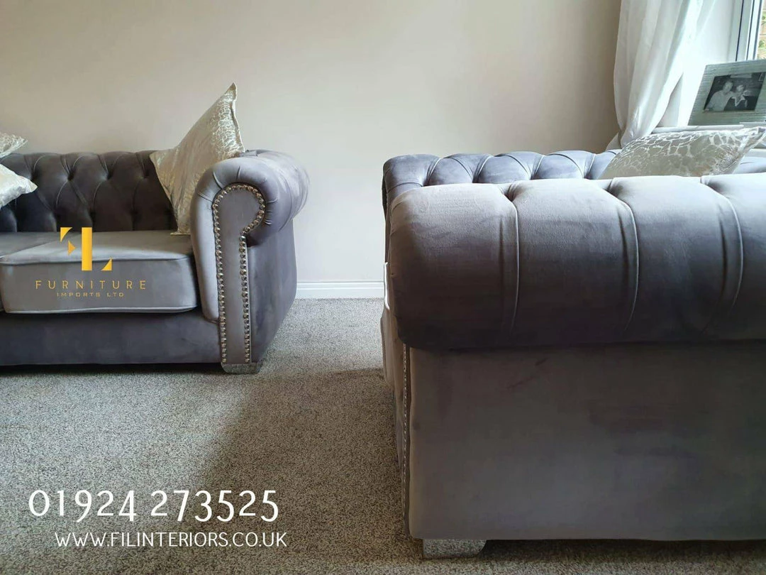 1) https://youtu.be/Ayp_W57FqyA – (Rockingham Steel Plush Chesterfield Sofa)