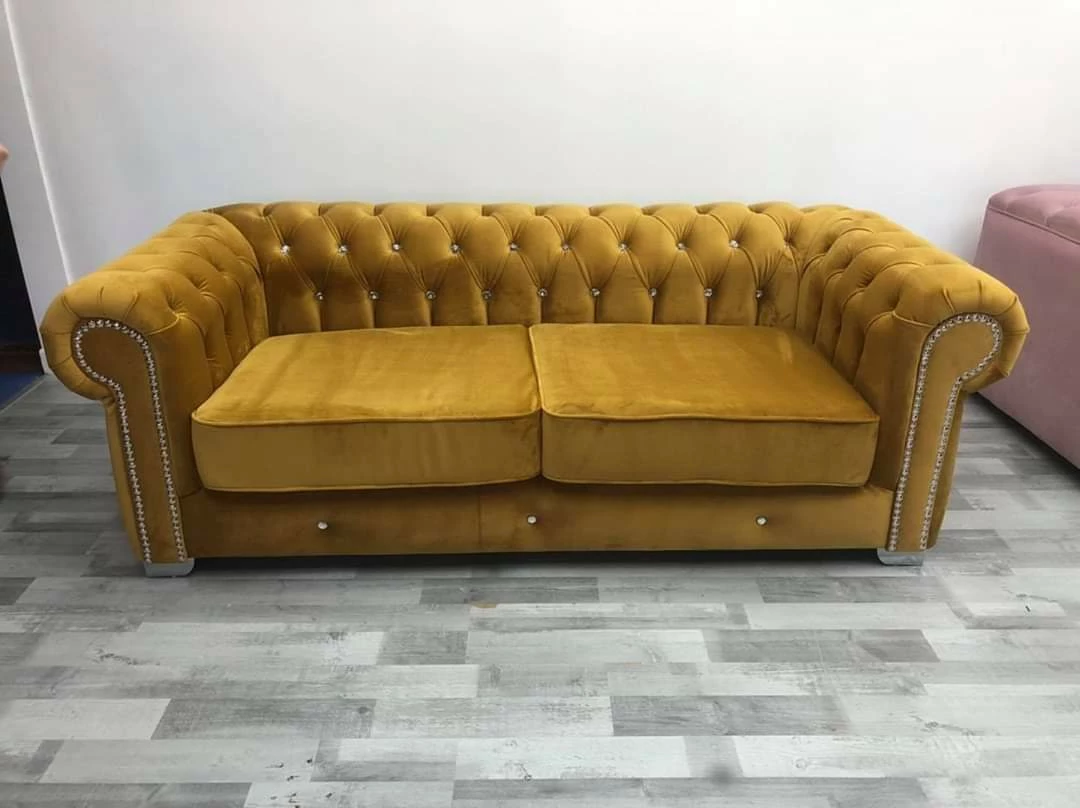 For a classically-styled fabric sofa with touches of contemporary style, the Rockingham Chesterfield sofa is a great choice. With a fixed back cushion that features chic fluting, curved scroll arms, feet and deep, plump seat cushions, this design is full of comfort and style. It doesnt come with cushions, but additional scatters can be added and can be further customisable to suit your personal taste as it comes in a range of sizes, fabrics and colours. This sofa would give a slightly modern twist to a traditional room, or add a vintage edge to a more contemporary look